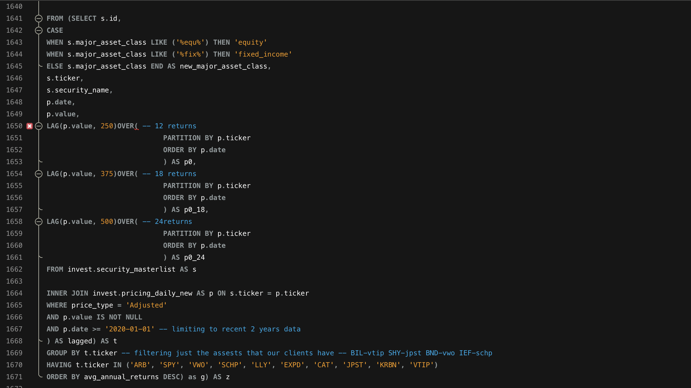 To accomplish the objective, I followed a systematic approach that involved gathering client portfolio data, categorizing securities based on various criteria, calculating performance metrics, assessing risk levels, and evaluating asset allocation. By leveraging SQL queries and financial expertise, I analyzed the portfolios to identify areas of improvement and develop tailored recommendations.